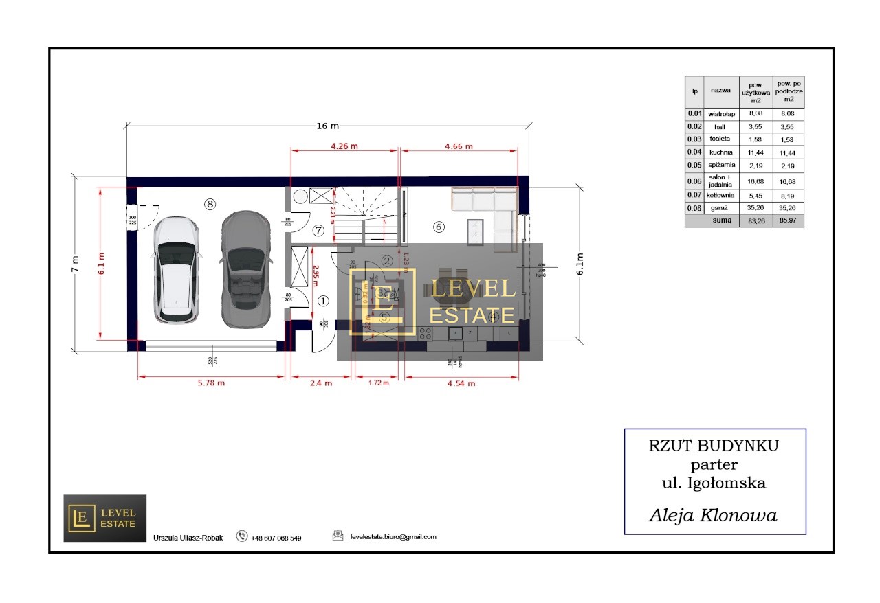 Przestronny, dwustanowiskowy garaż oraz dodatkowe 2 miejsca parkingowe na podjeździe zapewnią Państwu oraz gościom pełen komfort użytkowania.